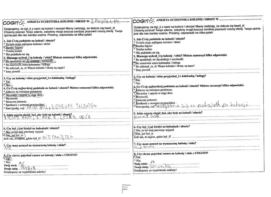 Opinie zestawione na podstawie ankiet wypełnionych przez uczestników po pobycie.