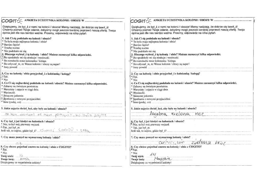 Opinie zestawione na podstawie ankiet wypełnionych przez uczestników po pobycie.
