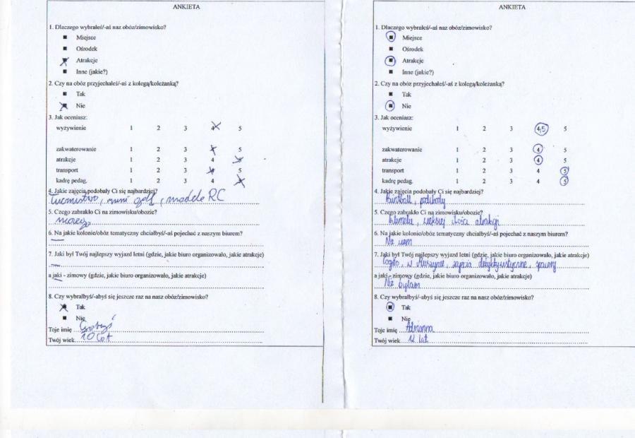 Opinie zestawione na podstawie ankiet wypełnionych przez uczestników po pobycie.